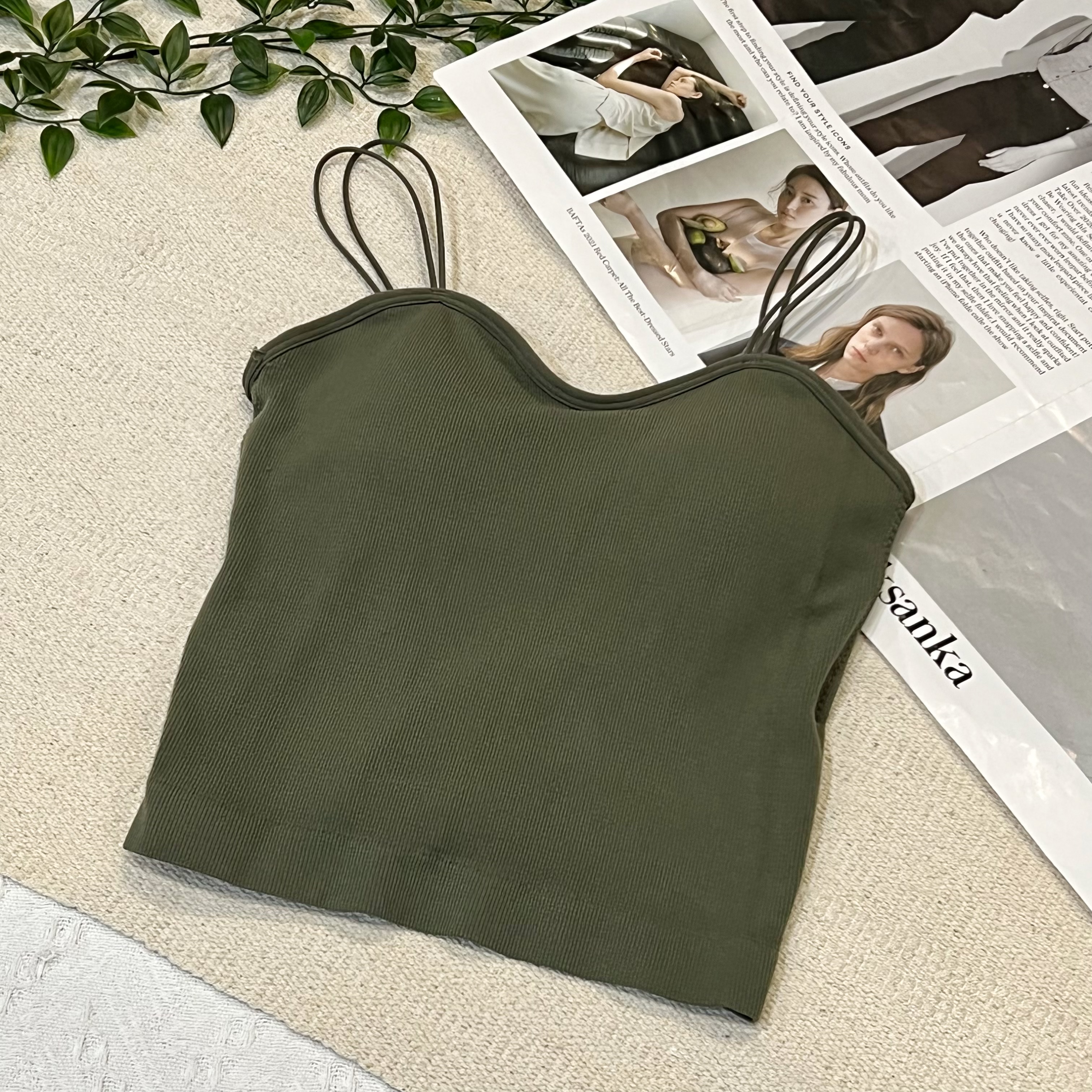 D01914 双细吊带背心m版型性感设计FREE SIZE衣长41cm/胸围60cm-76cm黑色/ 白色/ 青色/ 卡其色