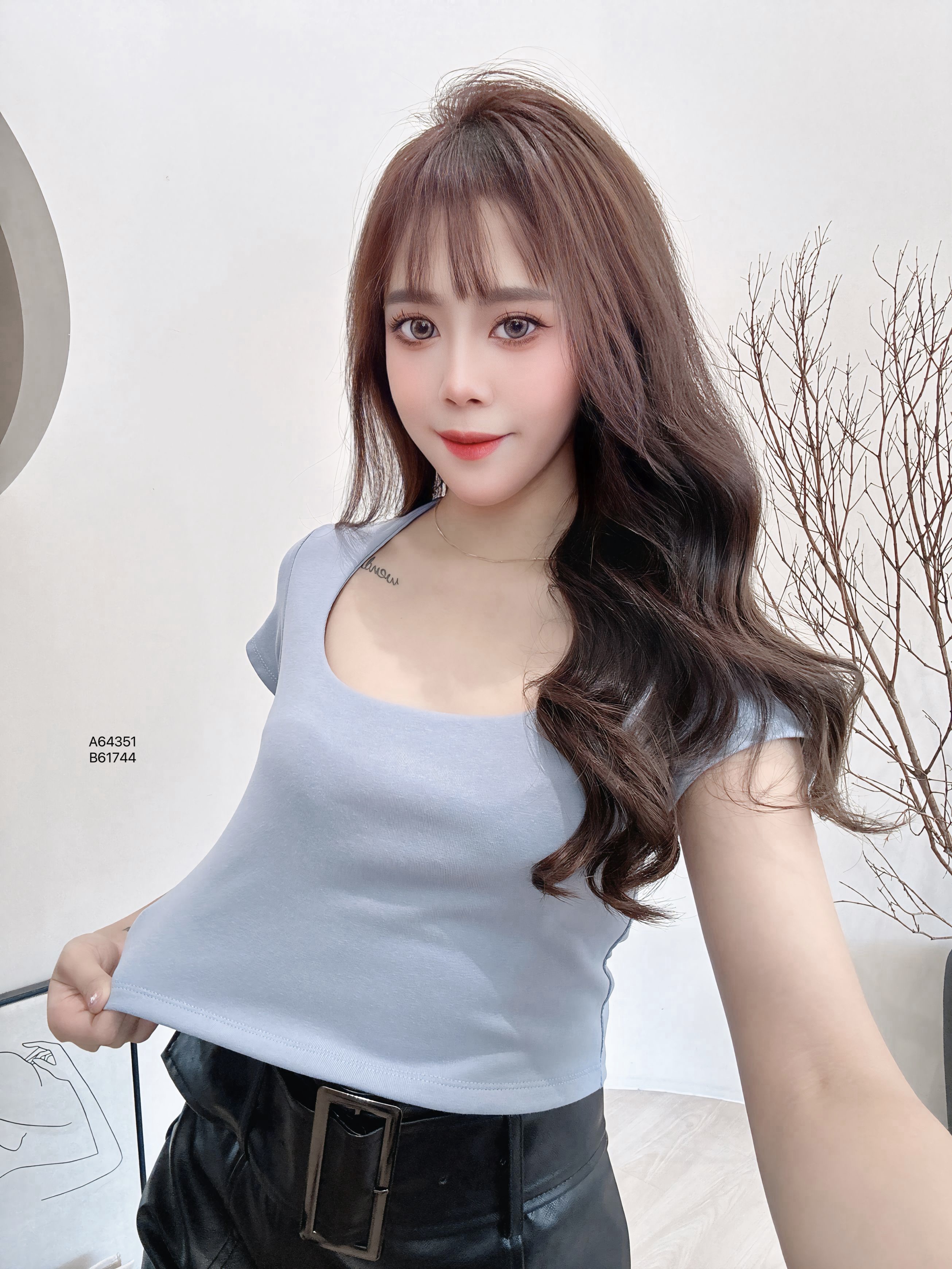 A64151爆款“方領純色百搭上衣PRICE|RM29【3 FOR 批发价 pcs/RM24】胸围70-100CM|长度39CM