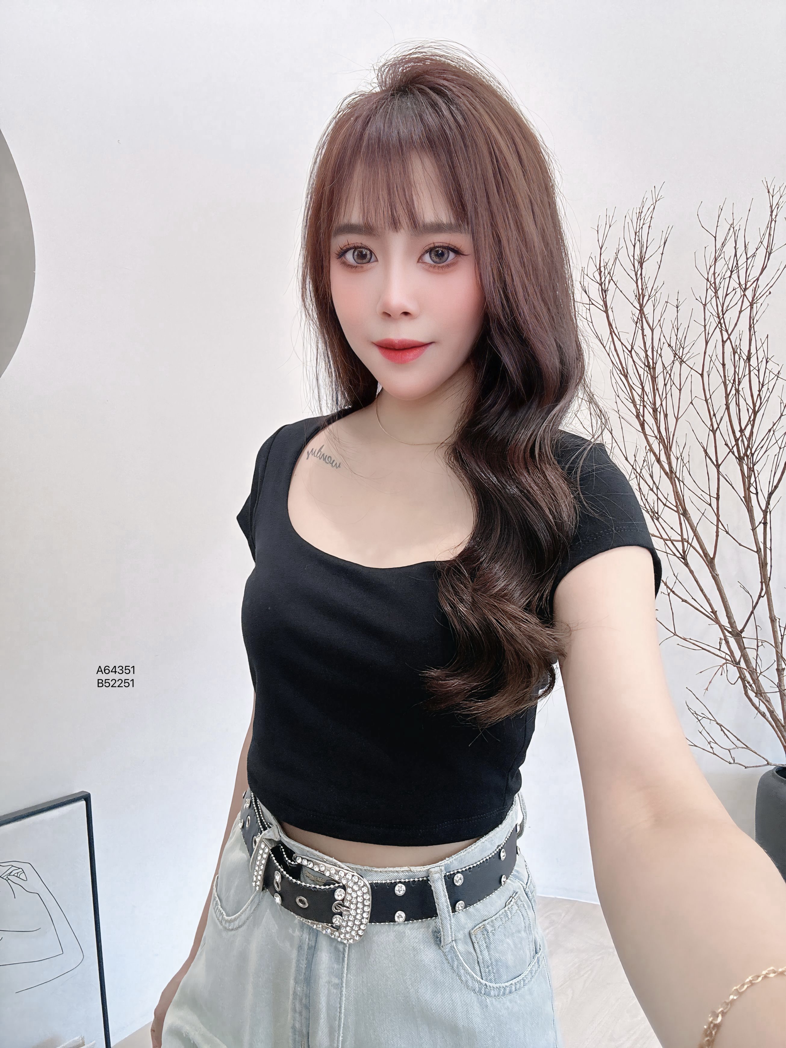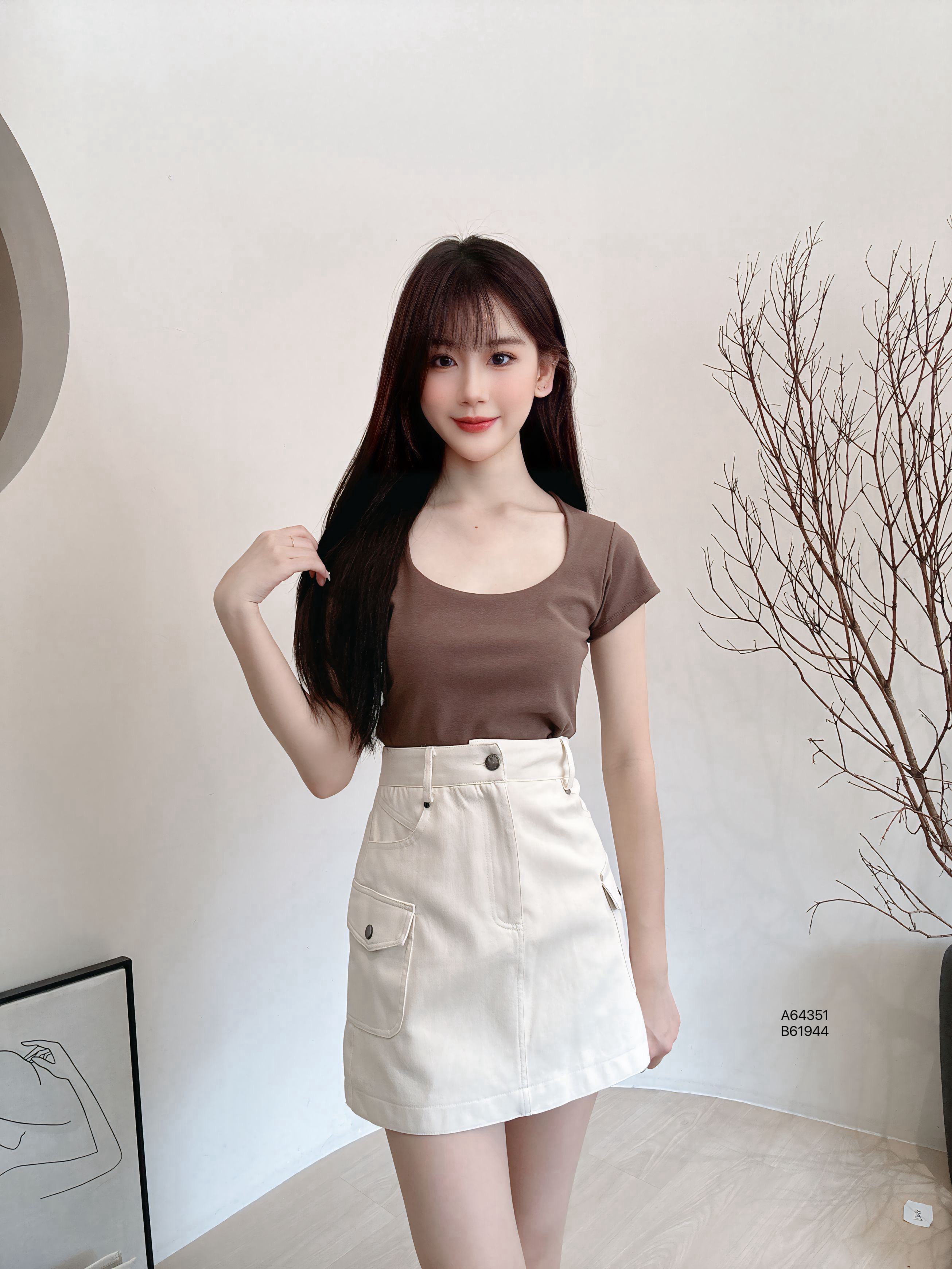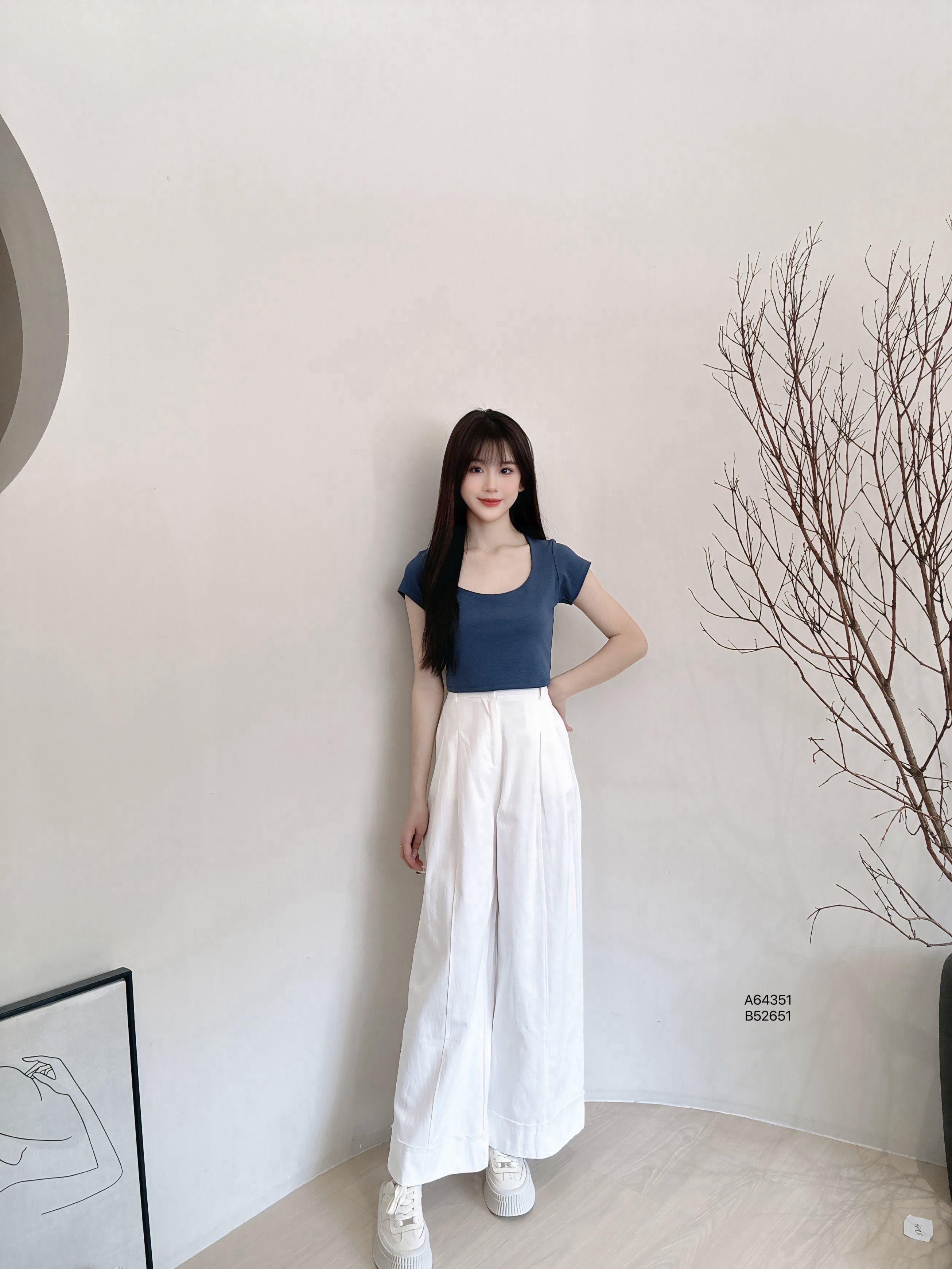 A64151爆款“方領純色百搭上衣