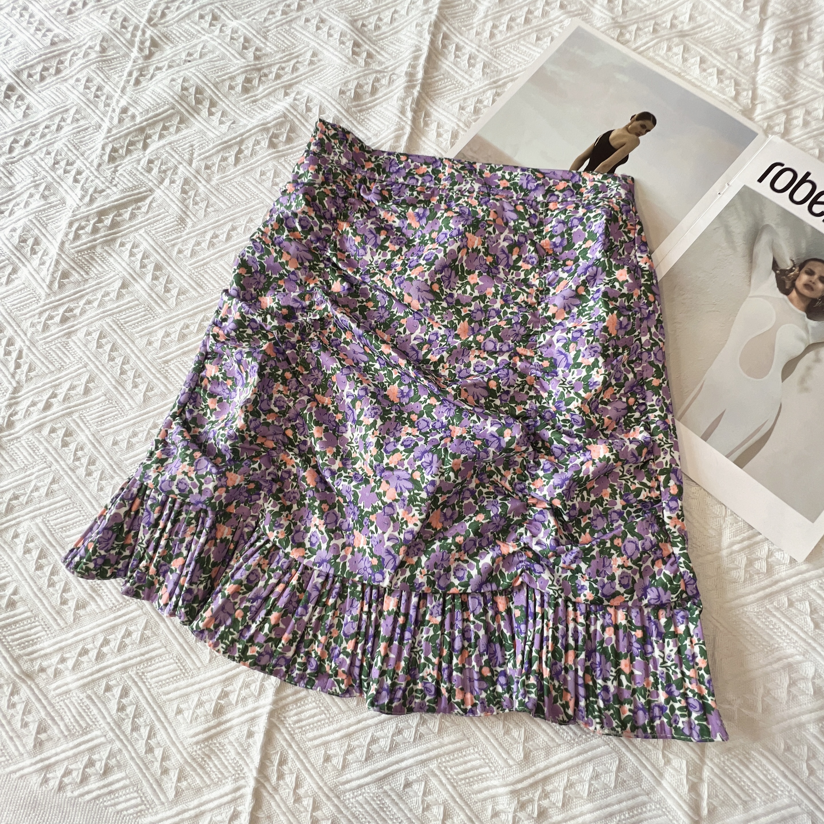 B04021 复古花花鱼尾半身裙颜色:紫色6 /黄色6 /粉色3 /绿色3腰围60-70cm,臀围70-82cmRM39