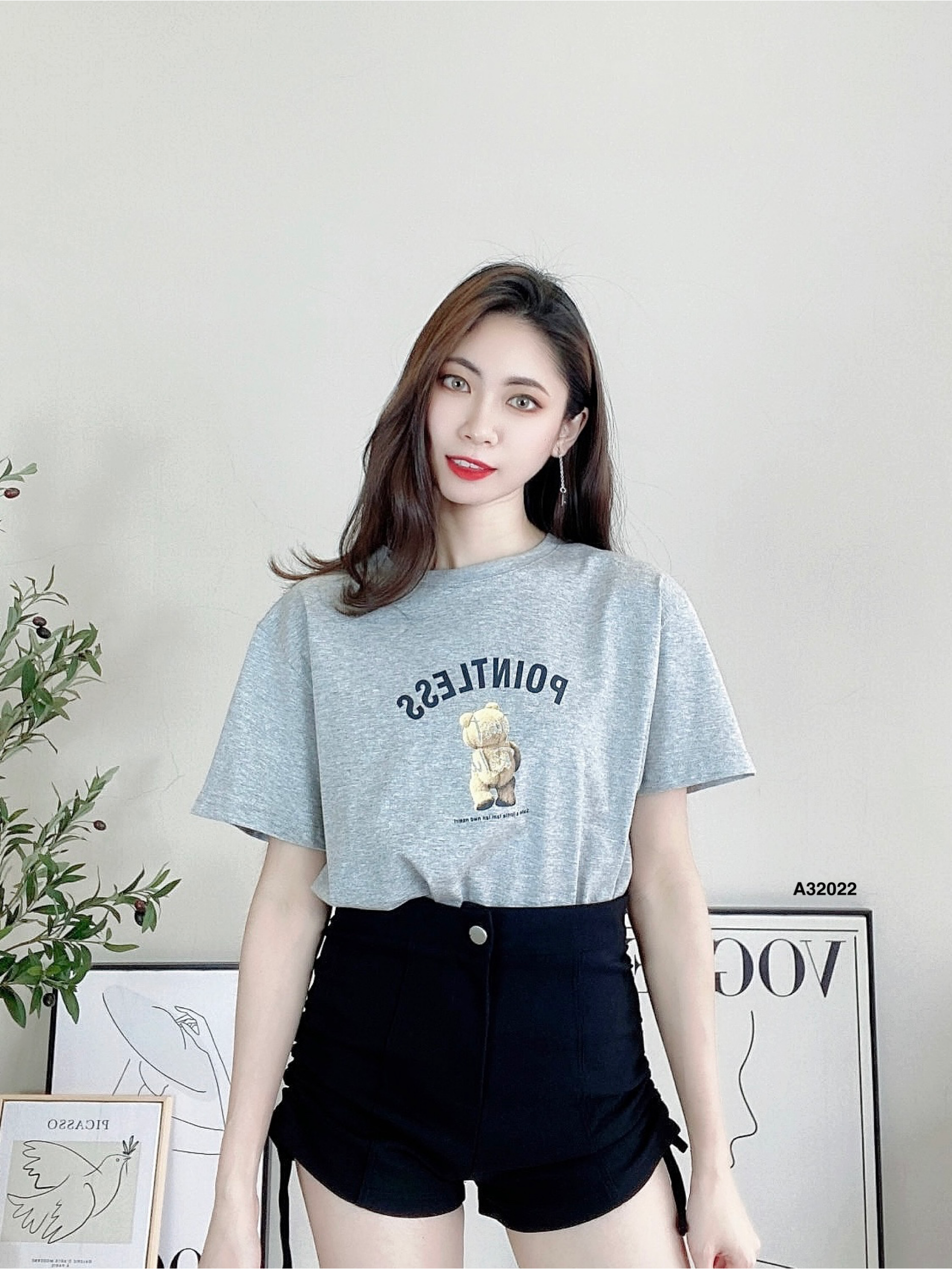 A32022 POINTLESS熊T黑,卡其,白,灰,青胸围108-120cm 长度63cm